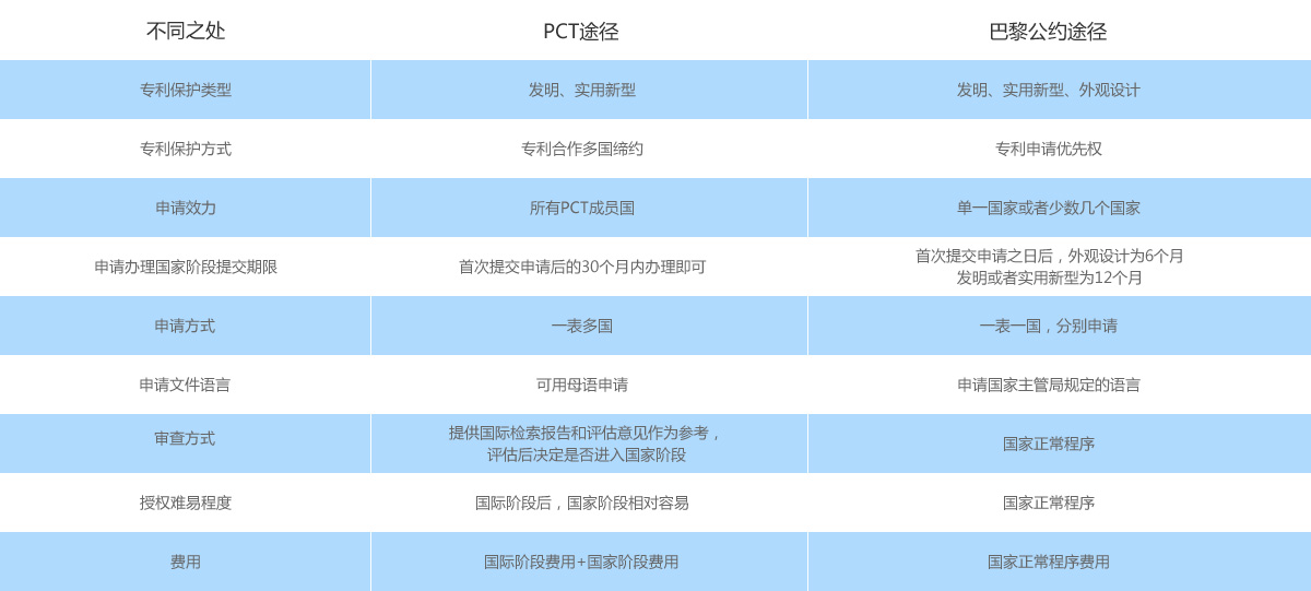 巴黎公約途徑與PCT途徑的比較