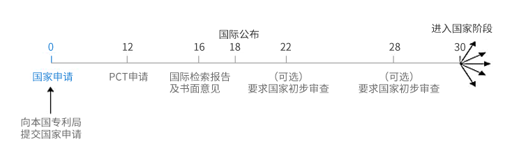 對中國申請人來說,申請人可以直接向中國國家知識產(chǎn)權局(受理局)提交一份PCT申請,要求優(yōu)先權的,應在自優(yōu)先權日起十二個月內(nèi)提出。由受理局確定的國際申請日,在PCT的所有成員國中自國際申請日起具有正規(guī)國家申請的效力。申請人可以自優(yōu)先權日起三十個月內(nèi)向欲獲得專利的國家專利局提交申請文件的譯文,并繳納相應的費用,根據(jù)具體國家的專利審查制度進行審查并且獲得授權。